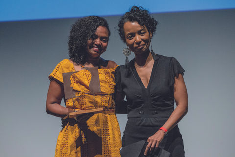 Rodrigo Pipponzi e Roberta Faria (centro), vencedores do prêmio 2018, com Hilde Schwab, em 2019